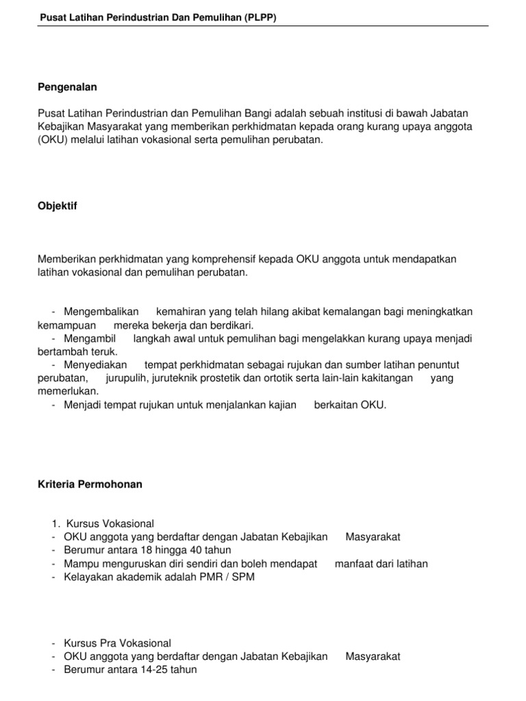 Permohonan Plpp Bangi 2022 Pusat Latihan Perindustrian Pemulihan